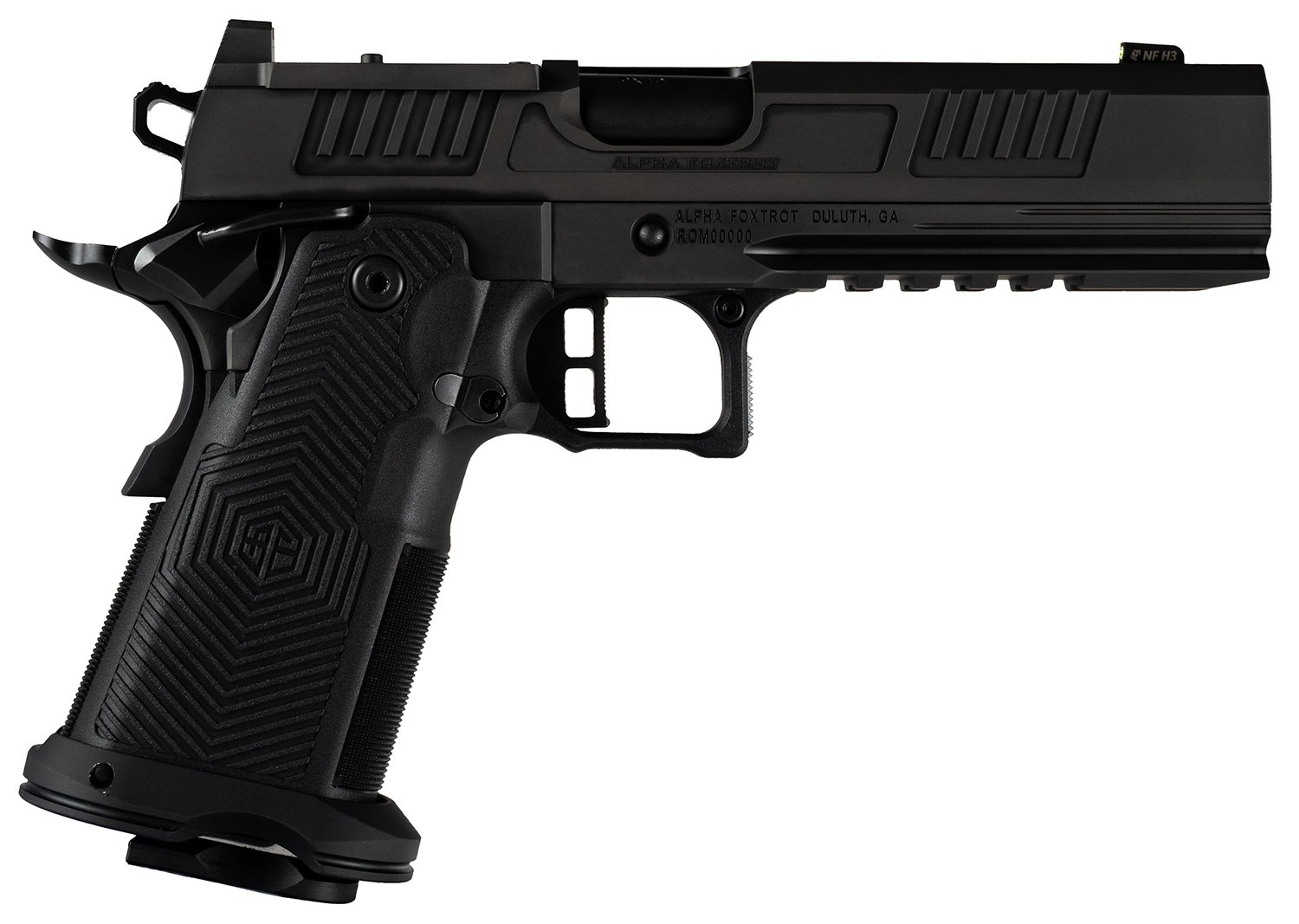 The AF1911 Romulus delivers full-size performance with Alpha Foxtrot’s modern 2011-style engineering. Featuring a black polished DLC finish on the frame and slide; Bull barrel; Night Fision sight; Picatinny rail; ambidextrous thumb safety; flared magwell and is RMSC/RMR optics cut. Includes MOS adapter plate, RMSC and RMR plate, 17rd and 20rd magaine.