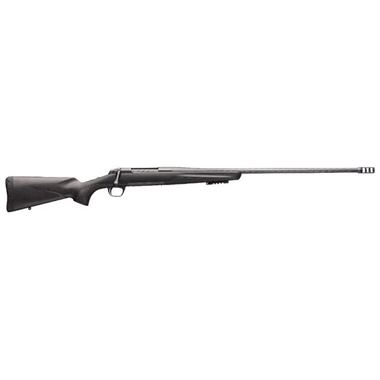 2021 SHOT Show Special – Big game bolt-action hunting rifle featuring a carbon fiber stock with natural finish Cerakote Carbon Gray Elite finish on barrel and action spiral fluted bolt skip fluted sporter contour barrel threaded muzzle Recoil Hawg muzzle brake and thread protector included. – Natural finish carbon fiber stock – 1/4 pound weight reduction over previous models – Cerakote Carbon Gray Elite finish on barrel action and bolt – Skip fluted sporter contour barrel with threaded muzzle – New Recoil Hawg muzzle brake (thread protector included) – Spiral fluted bolt with Cerakote Carbon Gray Elite finish – Removeable Picatinny accessory rail (swivel studs included)
