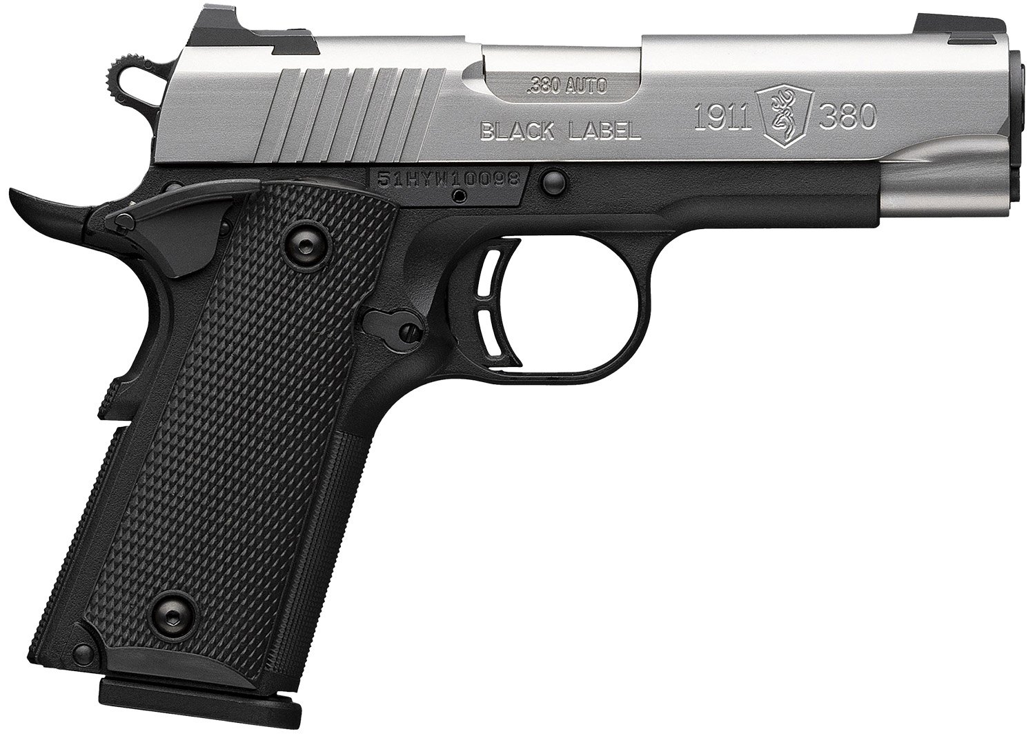 Browning 051119492 1911 Black Label Compact 380 ACP 8+1 3.63″ Stainless Steel Barrel, Satin Stainless Steel Serrated Slide, Matte Black Polymer Frame, Black Polymer Grip
