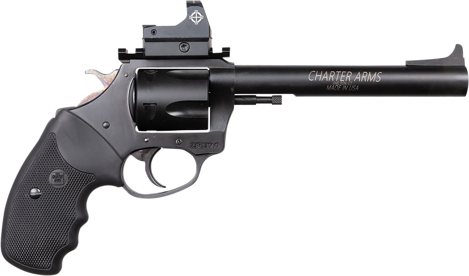 Charter Arms 63565 Mastiff Target Large Frame 357 Mag 5 Shot, 6″ Black Nitride Stainless Steel Barrel, Cylinder & Frame, Black Rubber Grip, Sightmark Micro Optic, Exposed Hammer