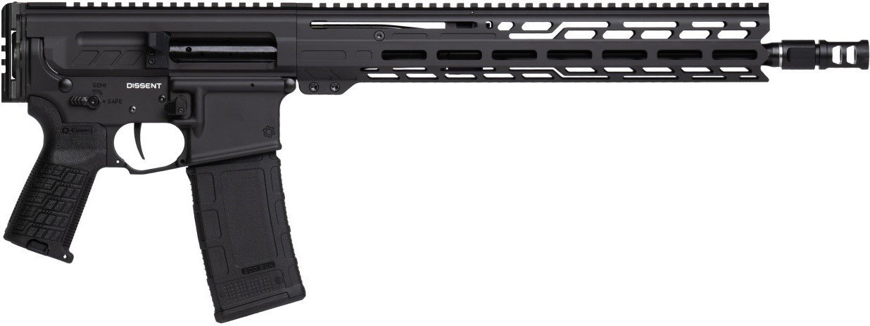 Shooting in close quarters or mid-range distances? The 14.5 DISSENT® Pistol in 300 BLK has enough barrel to extract the full performance of 300 BLK without the extra unnecessary length. Want to add a folding stock to this? No problem the ZEROED SVD Brake pinned and welded to the 14.5 barrel brings the legal length up to 16.1 so you don’t have to worry about SBRing anything. – Hosting an array of ZEROED parts and accessories the Mk4 DISSENT builds on the renowned AR15 manual of arms. One main exception is the forward non-reciprocating sider charger. This allows the shooter to configure the DISSENT with either a left or ride-side charging handle that can be manipulated while aiming downrange. The patent pending Compact Action removes the need for an AR buffer system and replaces it with a 1913 Picatinny rail end plate perfect for attaching a variety of accessories including slings folding stocks and pistol braces.Each DISSENT is available in a range of Cerakote finish options ensuring that the DISSENT matches your style and not just any style. – 300 BLK is an incredibly adaptable cartridge with different loadings for specific uses like suppressed. With the adjustable gas block on each 300 BLK DISSENT you can fine tune the gas system to best suit the supersonic or subsonic ammo loadings you like best. – Platform: Mk4 – Caliber: .300 BLK – Operating System: Direct Impingement – Barrel Twist: 1:7 – Barrel Contour: MT – Barrel Material: 4140CM SBN – Barrel Twist: 1:7 – Muzzle Device: CMMG ZEROED SVD Brake Pinned & Welded – Muzzle Thread: 5/8 x 24 – Gas Port Location: Carbine – Gas Block: Adjustable 0.750 – Upper Receiver: DISSENT 7075 T6 Aluminum – Lower Receiver: Mk4 Forged 7075 T6 Aluminum – Hand Guard: CMMG 13.5 Proprietary – Finish: Cerakote – Charging Handle: Dissent Side Charger – Reversible – Pistol Grip: CMMG ZEROED Pistol Grip – Buffer Type: N/A – Receiver Extension: 1913 Picatinny Rail End Cap – Trigger Type: ZEROED Drop-In – Trigger Guard: CMMG ZEROED Trigger Guard – Safety Selector: CMMG ZEROED 60/90 Degree – Magazine: Magpul 300BLK 30rd PMAG (2) – Weight: 6.0 lbs – Length: 24.9