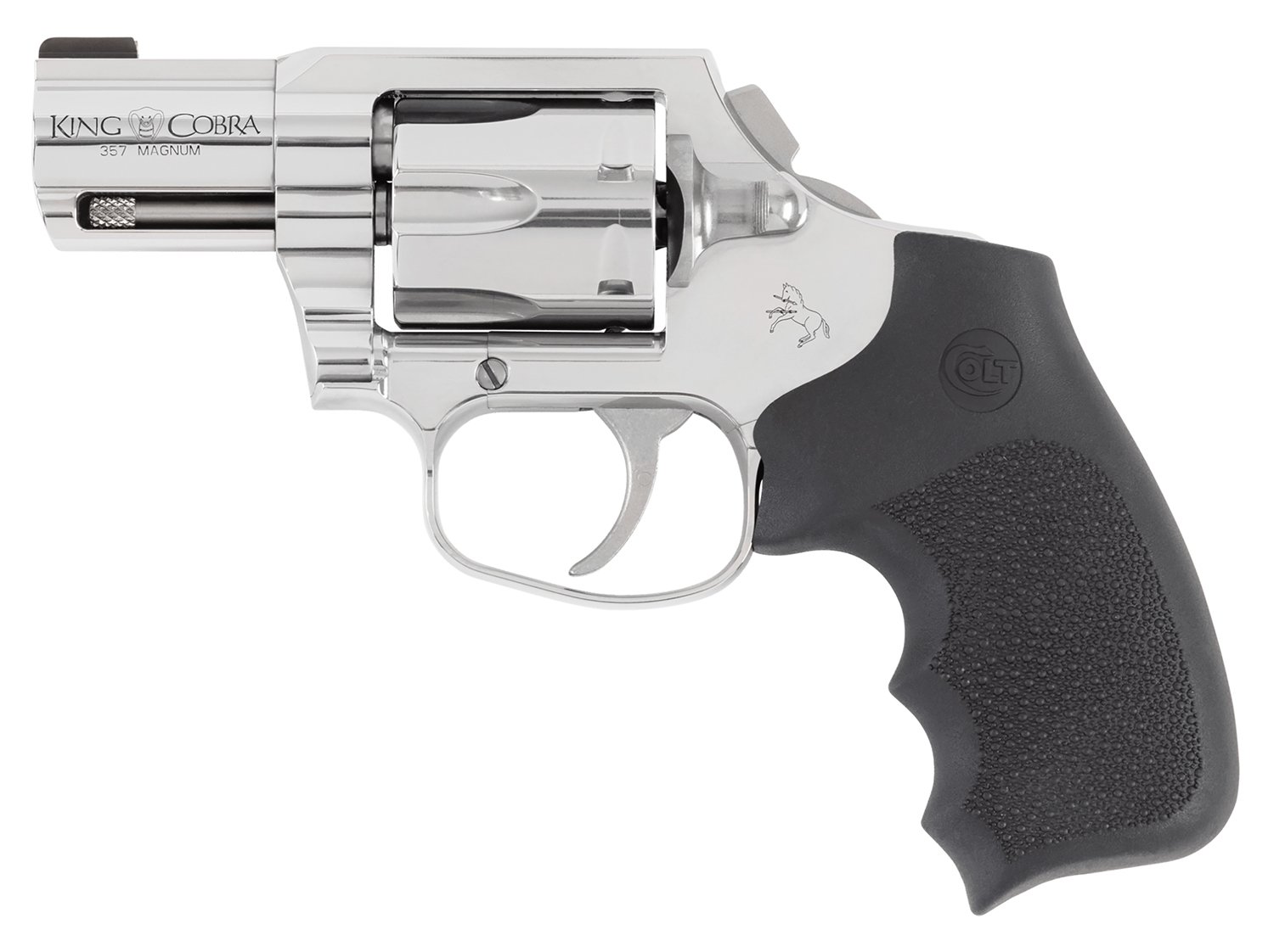Colt Mfg KCOBRASB2RBB King Cobra 357 Mag 6rd Shot 2″ Stainless Steel Barrel, Cylinder & Frame, Black Hogue Overmolded Grip, Exposed Hammer, DAO