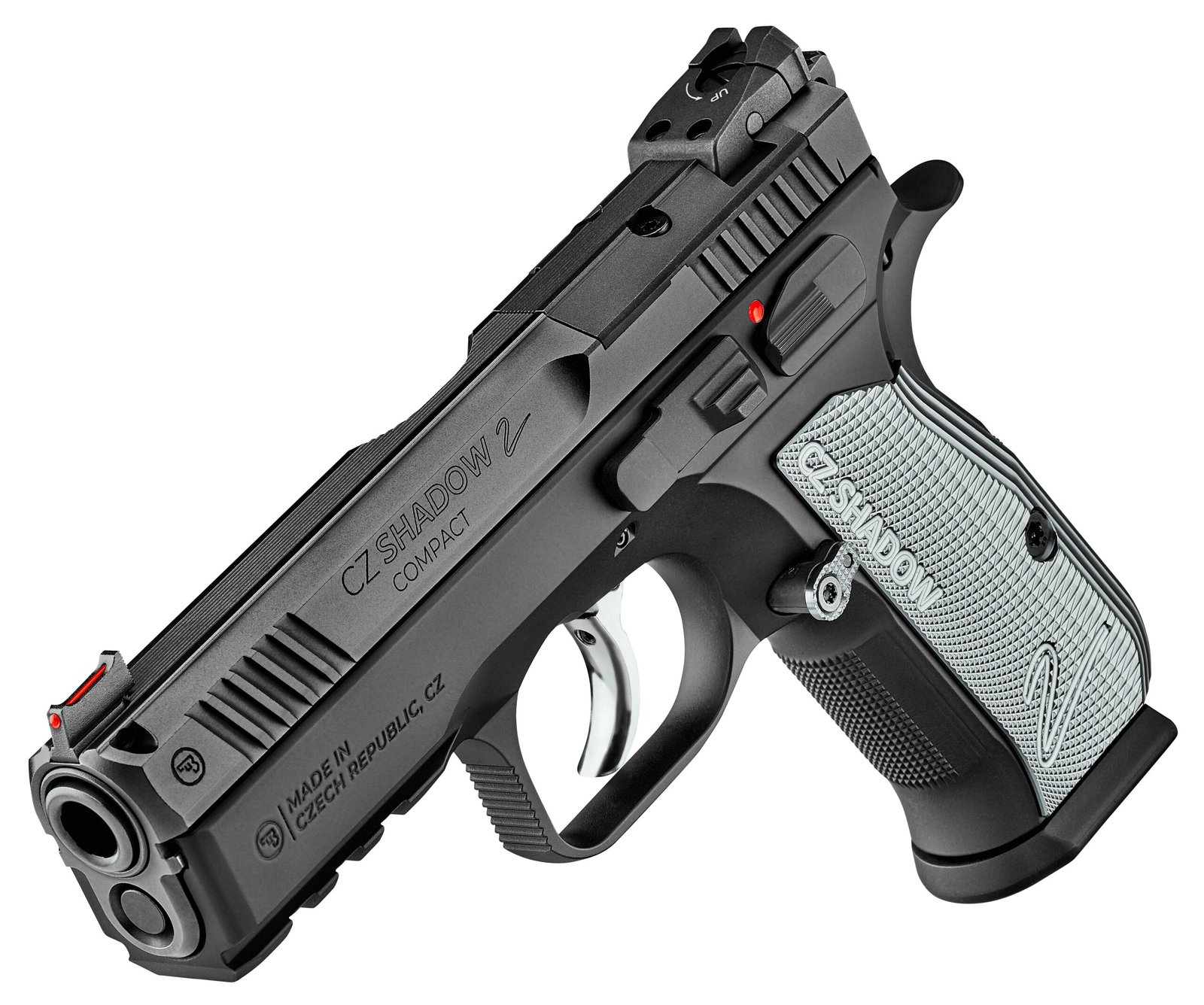 The CZ SHADOW 2 COMPACT is built for shooters who want the competition-proven performance of the SHADOW 2 in a lighter more carry-friendly package. With a slightly smaller footprint and a noticeable reduction in weight it maintains the outstanding accuracy controllability and shooting comfort that made the CZ SHADOW 2 pistol a winner at the world’s most prestigious championships. – Ideal for range days or everyday carry the SHADOW 2 COMPACT bridges the gap between sport and self-defense. It’s also optics-ready featuring a mounting interface compatible with CZ SHADOW 2 OR models making it easy to add a red dot for faster target acquisition and enhanced precision. – Caliber 9 × 19 – Magazine capacity 10 – Safety features Manual safety Safety notch on the hammer – Grips Duralumin – Frame material Forged aluminum alloy – Trigger reset 0.14 in – Trigger travel SA: 0.4 DA: 0.6 in – Trigger pull SA 3.4 DA 10.3 lbs – Trigger type SA/DA – Thread No – Sights Fiber optic front sight Checkered rear sight – Barrel length 4 in – Height 5.4 in – Width 1.4 in – Length 7.5 in – Weight with empty magazine 31.7 oz