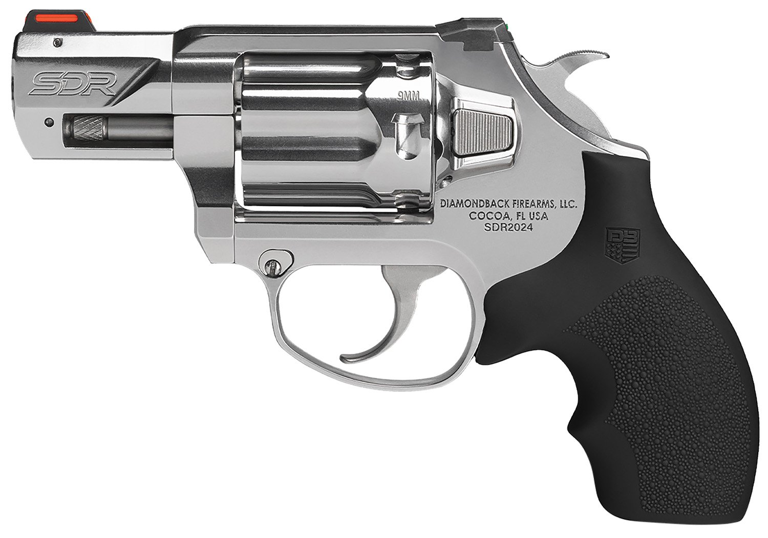 Diamondback DB0700P701 SDR Small 9mm Luger +P 6 Shot 2″ Polished Stainless Steel Barrel & Frame, Stainless Steel Cylinder, Black Hogue Rubber Grip, Exposed Hammer
