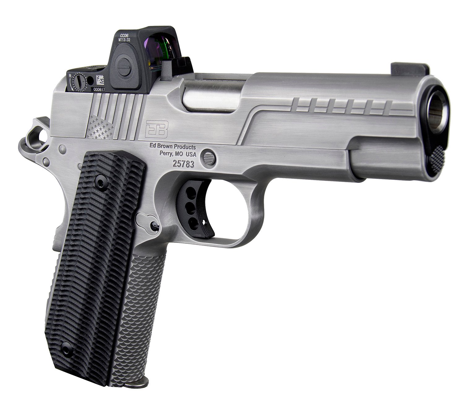 Ed Brown FX2SS FX2 45 ACP 7+1 4.25″ Recessed Crown Barrel, Stainless Steel Engraved American Flag/Serrated Slide, Stainless Steel Frame, Trijicon RMRcc 3.25 MOA Sight