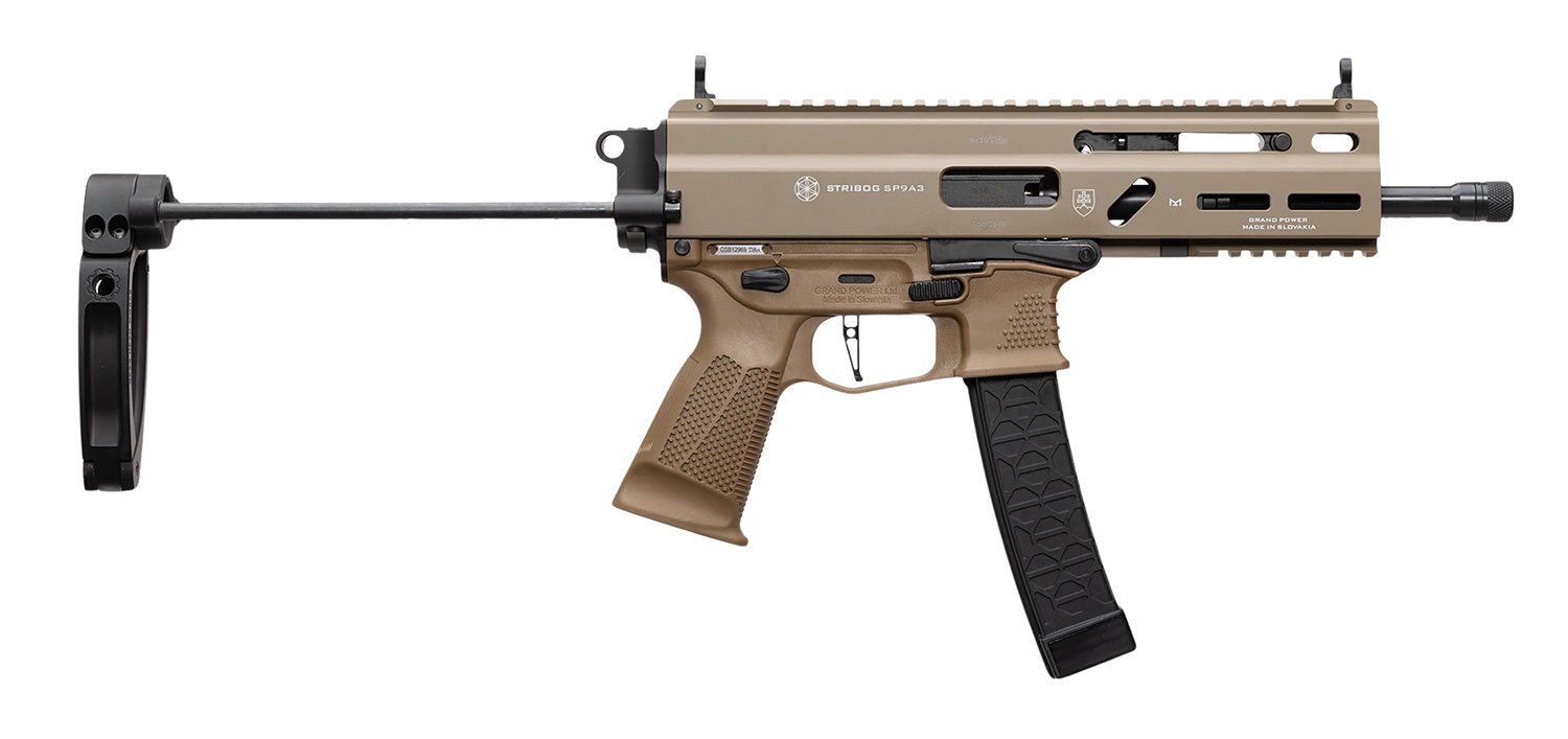 The Grand Power SP9A3 9mm Luger pistol features a 8″ barrel; M-LOK handguard; a non-reciprocating charging handle; QD sling sockets; PDW Tailhook brace; built in sights; 1913 Picatinny rail on receiver and rear for added stock extension. Includes three 30rd magazines and hard plastic carry case.