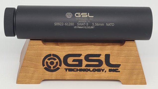 GSL’s new SWAT-5 suppressor for 5.56mm NATO is rated for full-auto and comes with a built-in suppressor retention system to keep the can from backing off during operation. – SWAT-5: – Caliber: 5.56mm NATO – Sound Reduction: 30 dB – Length: 6.3 – Diameter: 1.50 – Weight: 13 oz. – Materials: Titanium/Inconel – Finish: High Temperature Cerakote – Mount: 1/2-28 Thread – For Barrels: 10.25 minimum length 5.56×45/.223