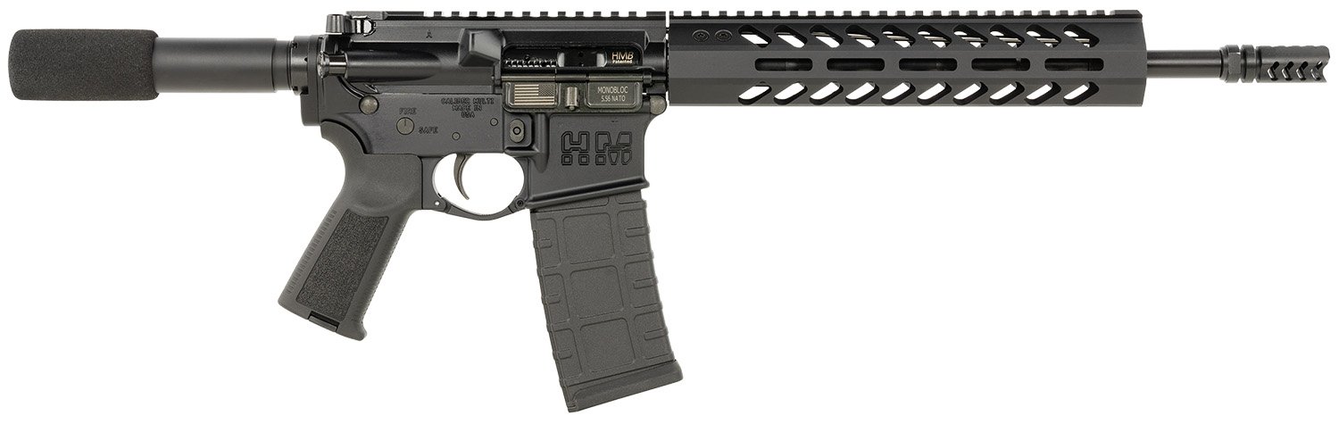 The RaiderMC 556 SBR pistol features a threaded, match grade Monobloc barrel with an integrally machined gas block; 10.38″ free floating Picatinny rail; forged aluminum upper and lower receivers; M16 bolt carrier group including charging handle and buffer tube/spring; custom trigger guard; Monobloc ejection port cover; custom QD end plate’ and HD Defense adjustable Close Quarter (CBQ) stock and enhanced grip. Includes magazine.