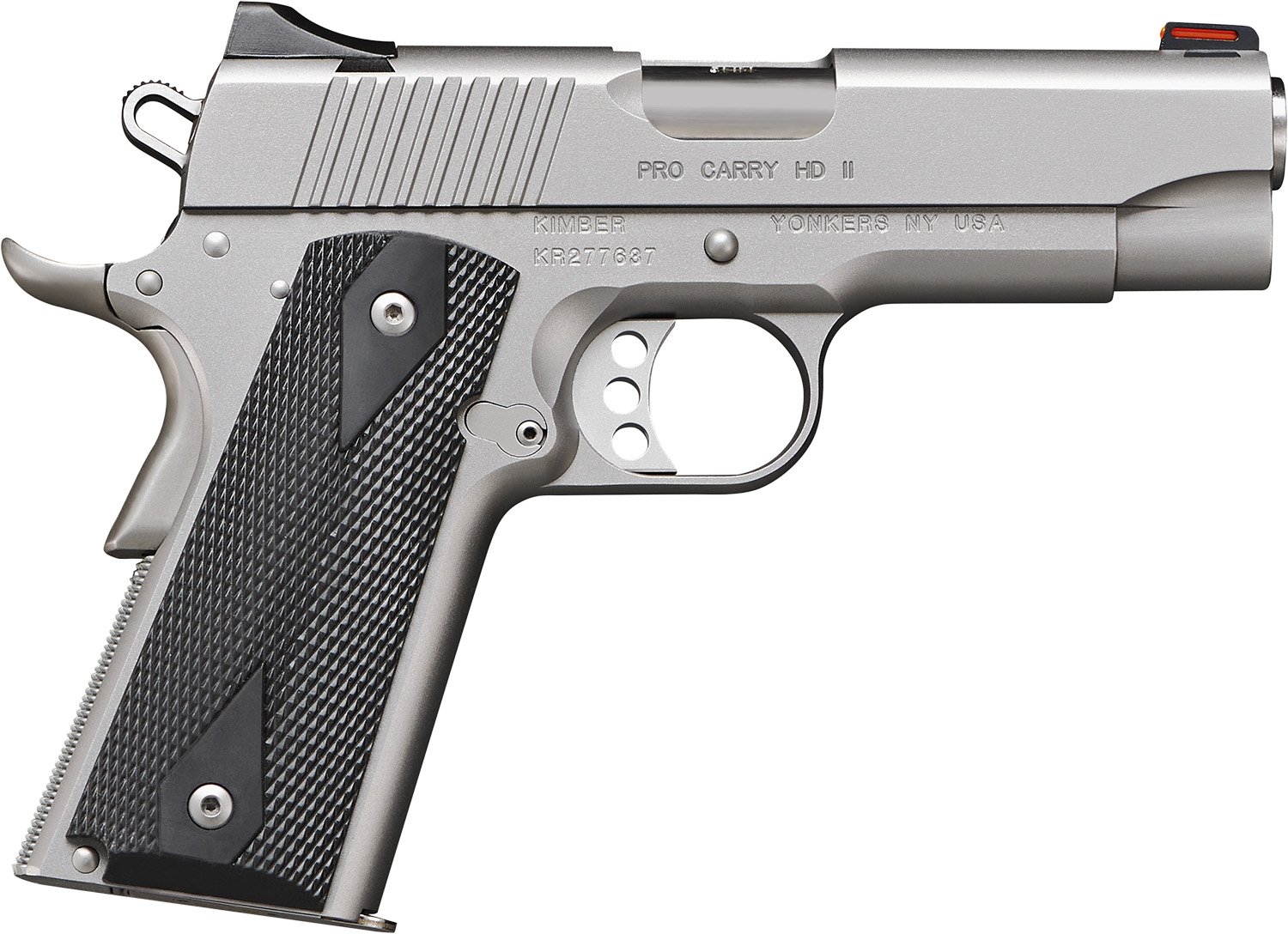 Kimber Mfg.,inc 3200044CA Pro Carry HD II (CA) 38 Super 9+1 4″ Stainless Steel Slide Satin Silver Black Synthetic Double Diamond Checkering Grip