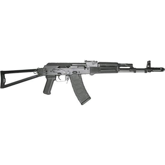 This is our version of the American made Side folding AK74 rifle (5.45 x 39mm) and measures 35.25 in overall length. See below for rifle characteristics: – Side-folding triangular metal stock – Polymer black upper and lower hand guards and pistol grip. – Black oxide finish – Fully Heat-Treated Mil-spec stamped Receiver – Chrome-Lined Barrel (16.25 length) 24×1.5 RH thread – FORGED Trunion bolt and carrier – Machined scope mount side rail – Front and rear sight (both adjustable) – Bolt hold open Safety Lever – 90 degree Gas Block – Bayonet Lug – Cleaning Rod – Extended magazine release – Magazine Capacity: 30 – Semi-automatic closed-bolt action – Caliber: 5.45 x 39 mm – Range: 350yds (effective) 1000 yds (Max)