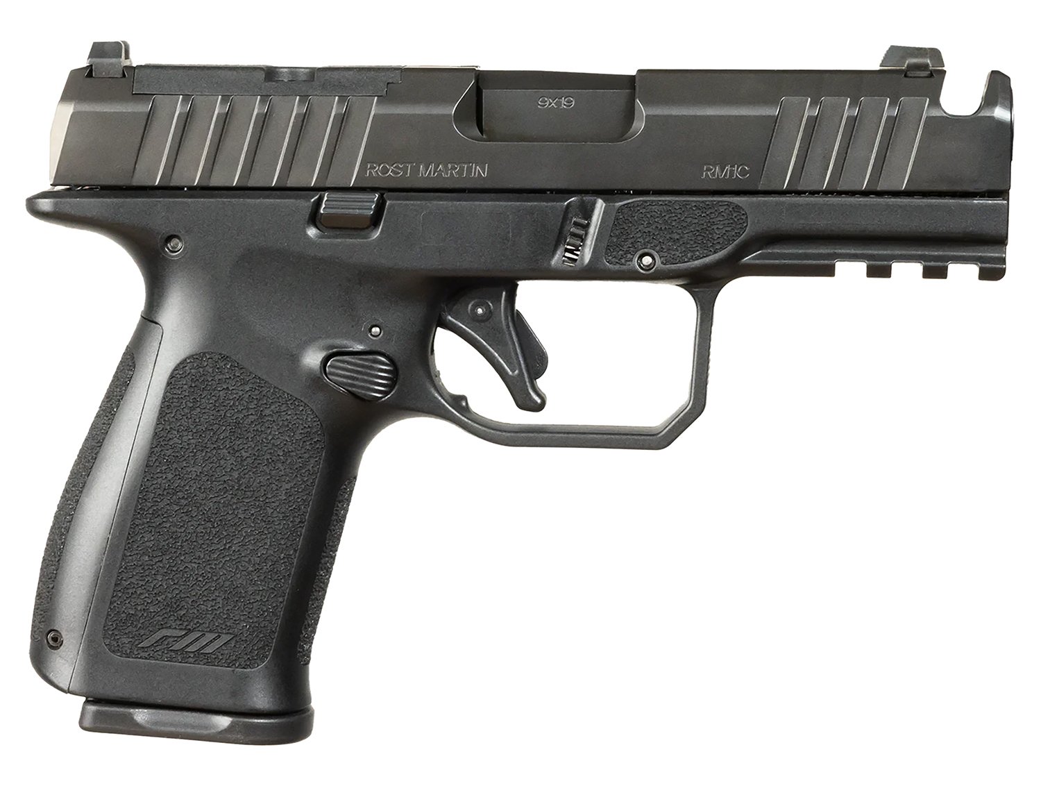 The RM1C in 9mm challenges the standard for striker-fired compact pistols and offers an innovative approach in supplying the most desirable features. The RM1C features a 4 hammer-forged barrel, aggressive front and rear slide serrations, ambidextrous mag release, and a smooth, light five-pound trigger pull with a clean break and a short reset. Non-glare top slide serrations combat eye fatigue and allow for quicker sight picture clarity. The low bore axis paired with the hammer-forged barrel provides superior accuracy out-of-the-box and improves muzzle control. The tough Tenifer treated slide provides anti-corrosion properties and is ultra-durable. The RM1C also accepts all popular pistol lights on the full three-slot Picatinny rail. Ergonomically advanced, the RM1C features the signature Rost Martin Responsive Grip Texturing, or RGT. The RM1C is engineered and built for longstanding durability and reliability trusted, backed by the Rost Martin lifetime warranty.