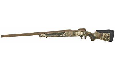 The biggest bulls. The longest shots. With the new Savage 110 High Country, they’re all within your reach. The rifle is built to maximize accuracy with a spiral-fluted barrel and bolt, as well as the Model 110 action secured three-dimensionally along its entire length within the AccuStock internal chassis. The AccuFit system lets hunters customize length-of-pull and comb height of the TrueTimber Strata synthetic stock. Plus, the user-adjustable AccuTrigger offers a crisp, clean pull critical for making precise shots at extreme distances. The low-friction, coyote brown PVD coating on the barrel, receiver and other critical parts is harder than competing finishes and protects against corrosion and heat. At just 2-4 microns thick, the coating does not interfere with the rifle’s tight tolerances