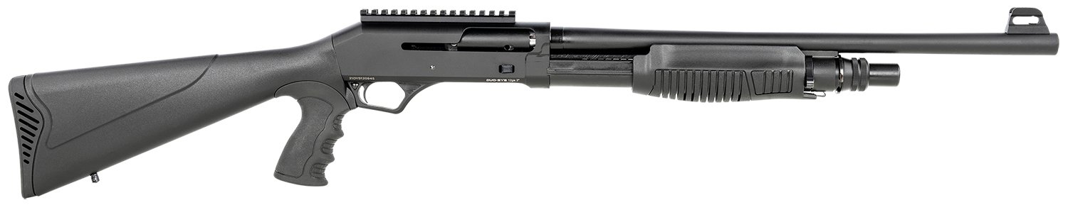 The Duo-Sys Force shotgun is a semi-auto/pump hybrid. It features an inertia recoil system in semi-auto mode. The shotgun uses an adjustable ghost ring sight, pistol grip stock and Picatinny rail. Includes Full, Cylinder and Modified chokes.
