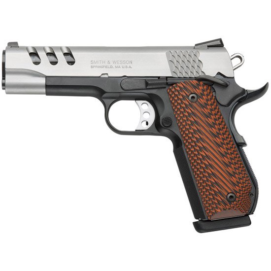 Action: SA – Caliber: .45 ACP – Capacity: 8+1 – Material: Alloy/Steel – Finish: Two Tone Black/Stainless – Grip: G10 Custom Wood – Sights: Black Post/Adjustable – Barrel Length: 4.25 – Overall Length: 7.95 – Weight: 29.6 oz