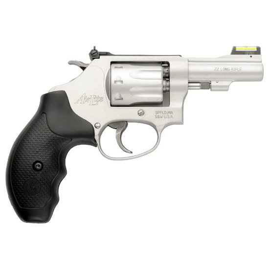 Action: SA/DA – Caliber: .22 LR – Capacity: 8 – Material: Alloy/Steel – Grip: Synthetic – Finish: Stainless – Sights: HI-VIZ Fiber Optic Green – Barrel Length: 3 – Overall Length: 7.19 – Weight: 12.5 oz – The Smith & Wesson J-Frame has become the most popular small frame personal defense revolver on the market. With decades of reliable performance to its credit the J-frame line offers models capable of firing .22 LR .22 Magnum® .38 S&W Special and the more powerful .357 Magnum® loads. Smith & Wesson offers these revolvers from our production M&P Pro Series and Classics lines in three diverse hammer designs; internal exposed and shrouded.