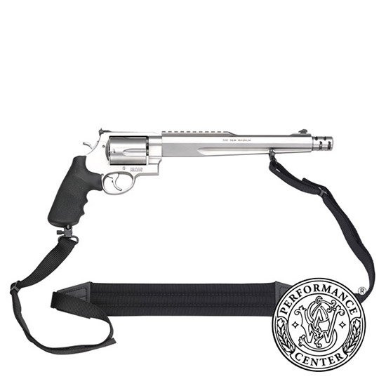 Action: SA/DA – Caliber: .500 S&W Magnum® – Capacity: 5 – Finish: Stainless – Material: Steel – Grips: Black Synthetic – Sights: Orange Ramp / Adjustable – Barrel Length: 10.5 – Overall Length: 18 – Weight: 79.3 oz – Chrome Hammer – Chrome Trigger with Trigger Stop – Muzzle Brake – PC Tuned Action – In 2003 the gunsmiths and engineers at Smith & Wesson wanted to deliver maximum power for serious handgun hunters. The power they sought required an entirely new frame the massive X-Frame and was the basis for the new Model S&W 500 the most powerful production revolver in the world. Performance Center guns originate from standard designs or are created from the ground up. From hand-cutting and fitting to fine tuning for precision these firearms are top performers. Products from the Performance Center are the ultimate expression of old-world craftsmanship blended with modern technology.