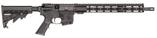 Built to perform under various conditions the M&P SPORT III rifle is as versatile as it is reliable. Engineered for a wide variety of recreation sport shooting and professional applications the new SPORT III offers more options to accessorize than the previous generations. Lightweight and rugged the SPORT III embodies the best combination of function and form. – Featuring a forged integral trigger guard Armornite finish on the barrel chromed firing pin forward assist and dust cover. Get unmatched value with the new M&P SPORT III. – Free-Float Handguard – Able to mount a multitude of aftermarket accessories. – Mid-length Gas System – Users can expect less felt recoil when shooting. – 1:8 Twist 5R Rifled Barrel – 5R rifling profile has consistent contact with the projectile ensuring a more accurate rifle. The 1:8 twist rate change allows for more variety of ammo to be used. – width 2.5 in – length 35 in – height 8 in – weight 104.32 oz – CALIBER 5.56 NATO – SIZE RIFLE – CAPACITY 10 – ACTION GAS OPERATED – BARREL LENGTH 16 – GRIP POLYMER – OPTIC READY YES – SAFETY THUMB SAFETY – COLOR/FINISH BLACK – STATE COMPLIANCE CO HI RI VT – THREADED BARREL YES – BARREL MATERIAL 4140 CM – FRAME ALUMINUM – NUMBER OF MAGAZINES 1 – 10LB TRIGGER NO – STOCK ADJUSTABLE