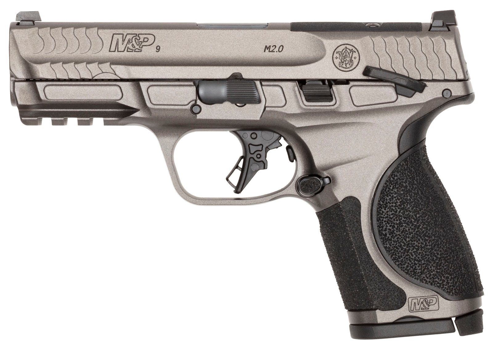 Smith & Wesson®’s commitment to excellence shines through its M&P family of metal-frame pistols renowned for their reliability and performance. The M&P9 M2.0 Metal rises to the challenge with its enhanced features like a rigid metal frame adjustable palmswells flat-face trigger design aggressive slide serrations and an enhanced grip texture- all in an effort to increase efficiency with our platform. – C.O.R.E. System- Optic cut slide with plates designed to accommodate most major red dots on the market for handguns. – Flat-Face Trigger- New flat design that allows for consistent trigger finger placement giving you more accurate and repeatable shooting. – Optimized Handling- With its 18-degree grip angle the M&P platform offers users a natural point of aim allowing them to get on target quicker. The addition of our magwell allows for more efficient reloads. – 4 1:10 twist stainless steel barrel w/Armornite® finish. – Optic ready C.O.R.E. System. – Flat-face trigger. – 18 degree grip angle. – White dot sights. – 7075-T6 aluminum frame w/Tungsten Gray Cerakote® finish. – Stainless steel slide w/Tungsten Gray Cerakote® finish. – Four interchangeable palmswell grip inserts. – Magazine disconnect safety – Tactile loaded chamber indicator – Ships with (two) 10-round magazines. – width 1.4 in – length 7.25 in – height 5 in – weight 26.4 oz – CALIBER 9MM – SIZE COMPACT – CAPACITY 10 – ACTION STRIKER FIRED – BARREL LENGTH 4 – GRIP POLYMER – SIGHTS WHITE DOT – OPTIC READY YES – SAFETY THUMB & MAGAZINE DISCONNECT SAFETY – COLOR/FINISH GRAY – STATE COMPLIANCE CA CO CT DE HI IL MA MD NJ NY RI VT WA DC – THREADED BARREL NO – BARREL MATERIAL STAINLESS STEEL – FRAME ALUMINUM – LASER NO – NUMBER OF MAGAZINES 2 – 10LB TRIGGER NO – MODEL M&P 2.0 METAL