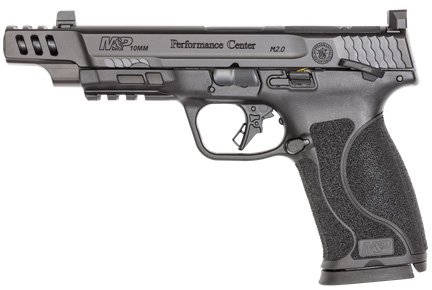 Building off of the successful launch of the M&P®10mm M2.0 we’re happy to give this the Performance Center® treatment. A long slide with porting in the barrel makes this a more accurate and more manageable 10mm handgun. The M2.0 flat trigger will give you consistency in your pull and now with the Performance Center® tuning you can deliver accurate shots down range. A perfect option for those looking to step up their game. – Ported barrel reduces muzzle flip and perceived recoil allowing for quick follow-up shots. – Optic-Ready slide w/tall night sights. – Optimal 18-degree grip angle for natural point of aim. – Flat M2.0 trigger with the enhanced Performance Center® tuning gives you a crisp break and audible reset leading to more accurate and faster shooting. – Accurate 1 in 10 twist M&P® M2.0 barrel. – Extended rigid embedded stainless steel chassis to reduce flex and torque when firing. – M&P’s patented take-down lever and sear deactivation systems allow for disassembly without pulling the trigger. – Four interchangeable palmswell grip inserts for optimal hand fit and trigger reach- S M ML L. – Enhanced grip texture allows the user to manage recoil keep a firm grip and delivers comfort when concealing. – Armornite® durable corrosion resistant finish. – Specs – width 1.3 in – length 8.6 in – height 5.6 in – weight 31.4 oz – NUMBER OF MAGAZINES 2 – CAPACITY 15+1 – 10LB TRIGGER NO – SIGHTS NIGHT SIGHTS – THREADED BARREL N/A – GRIP POLYMER – OPTIC READY YES – SIZE FULL-SIZE – SAFETY THUMB SAFETY – COLOR/FINISH BLACK – STATE COMPLIANCE CODEILORVT – PERFORMANCE CENTER YES – CALIBER 10MM AUTO – BARREL LENGTH 5.6 – BARREL MATERIAL STAINLESS STEEL