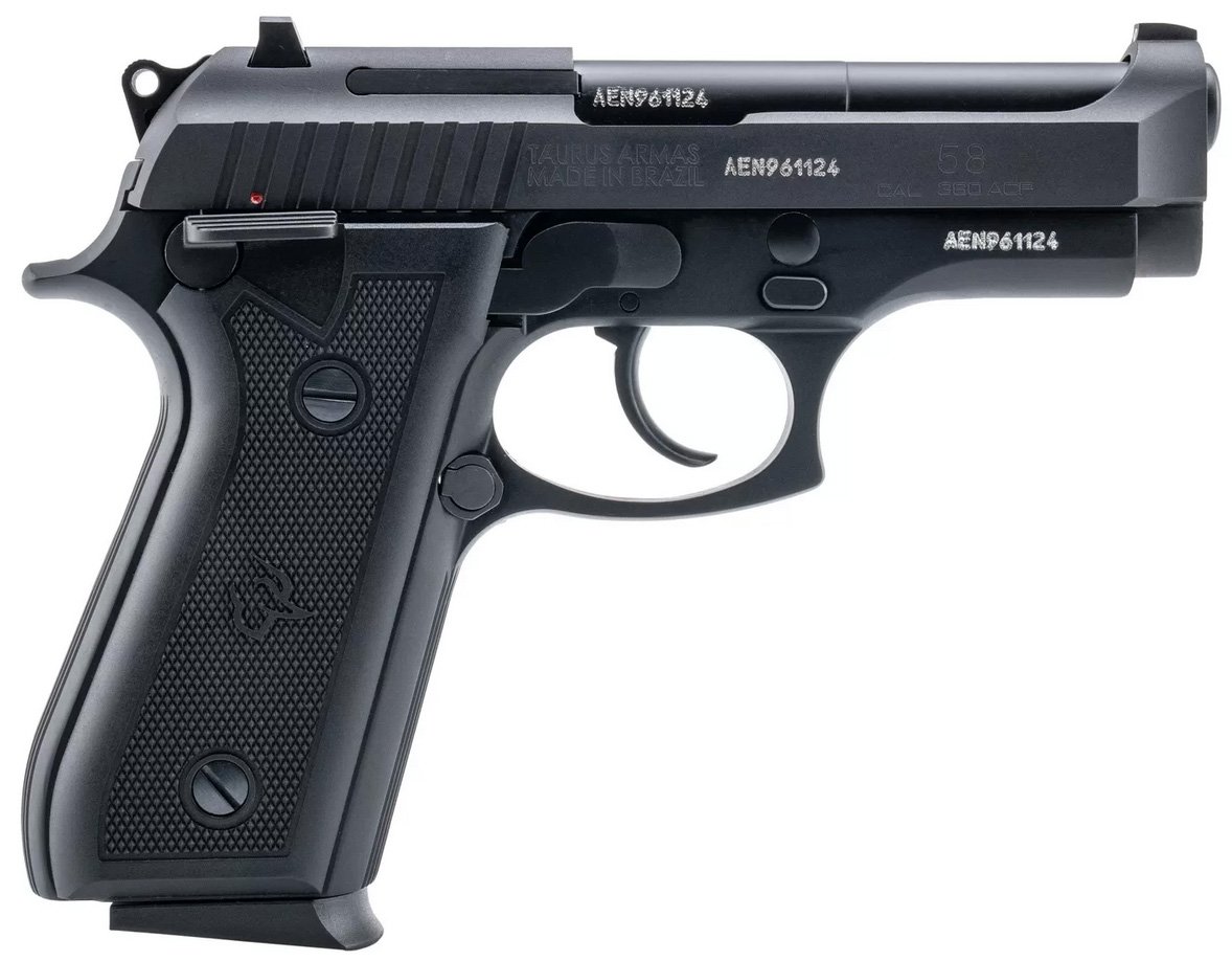 The Taurus 58 brings together smart design modern materials and high capacity to offer an ideal option for EDC (Everyday Carry) and range use alike. This new addition to the Taurus lineup reflects the company’s ongoing dedication to innovation safety and delivering firearms tailored to real-world needs. – Capacity: 15 RDS – Action Type: DA/SA – Firing System: Hammer – Front Sight: Integrated – Rear Sight: Drift Adjustable – Grip: Polymer – Caliber: .380 ACP – Barrel Length: 4.00 in. – Overall Length: 7.40 in. – Overall Height: 5.1 in. – Overall Width: 1.6 in. – Pistol Weight: 32 oz. – Slide Material: Alloy Steel – Slide Finish: Matte Black – Frame Material: Aluminum – Barrel Material: Stainless Steel – Frame Finish: Matte Black – Barrel Finish: Matte Stainless
