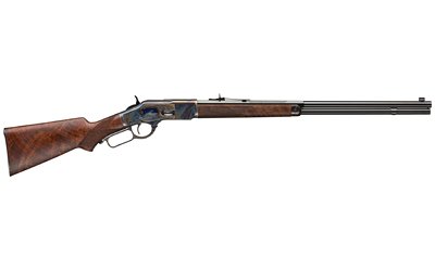Lever-action Model 1873 rifle with a classic color case-hardened finish, Grade V/VI walnut stock with curved grip, rifle-style forearm and 24″ blued half octagon/half round barrel.